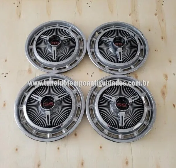 Belíssimas Calotas Antigas Chevrolet Impala SS 1965 de 14". Lindas peças para uso ou decoração em sua garagem, oficina, loja...etc. Em excelente estado de conservação. Medem 34 cm de diâmetro por dentro e 36 cm por fora...Mínimas marcas do tempo e uso.. Frete por conta do Comprador