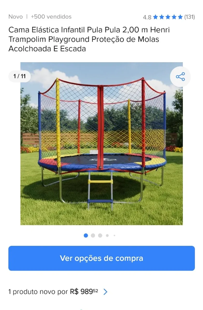 Alegria e diversão garantidas com a Cama Elástica Infantil! Perfeita para as crianças gastarem energia com segurança e muita diversão. Possui proteção de molas e escada para facilitar o acesso. Ideal para brincar ao ar livre!