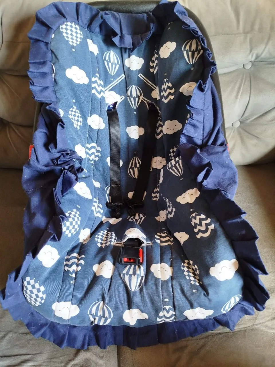 Bebê conforto confortável e seguro para o seu bebê. Design charmoso com estampas de balões e nuvens para um passeio tranquilo e cheio de estilo.