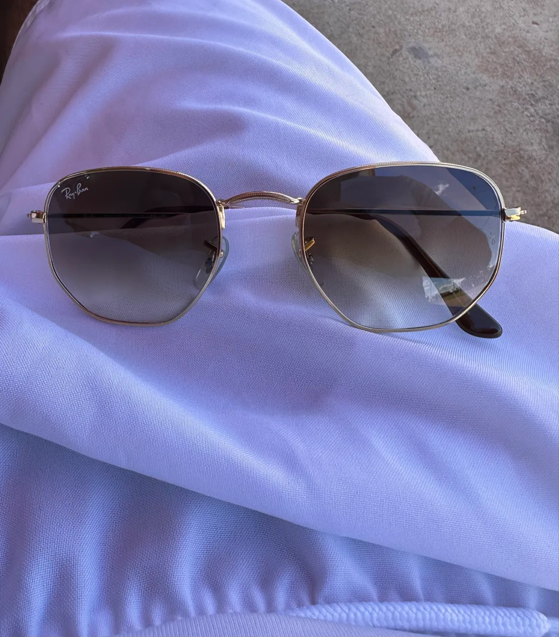 Comprei em Outubro do ano passado e usado pouquíssimas vezes este Ray-Ban Hexagonal. Design moderno com lentes degradê marrom-claro e armação Polido Dourado-Arista que combinam elegância e proteção.