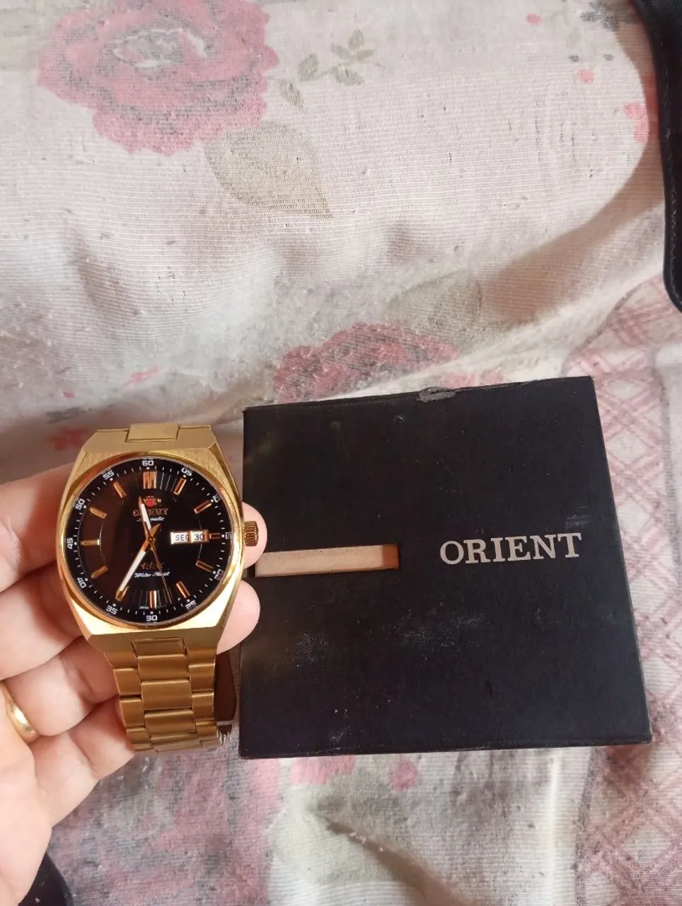 Relógio Orient Automático dourado, perfeito para quem busca elegância e precisão. Design sofisticado e funcionalidade impecável, ideal para complementar seu estilo.nao troco só venda.