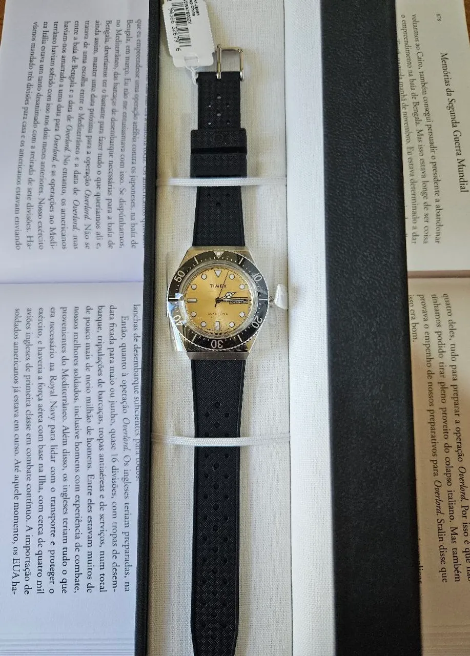 Timex M79 Automatic Ref: TW2W47600 Características Tipo: Automático Movimento: Miyota 8215 Caixa: Aço inoxidável Diâmetro: 40,00 mm Lug to lug: 46,00mm Espessura: 14,50 mm Vidro: Cristal Acrílico Resistência à água: 50 metros Coroa: Simples, Puxar/Empurrar Pulseira: Borracha Largura da pulseira: 18,00 mm Peso total aprox.: 82 gramas Produto Novo Valor: R$ 1.250,00 + Frete Att. Doomsday Watches