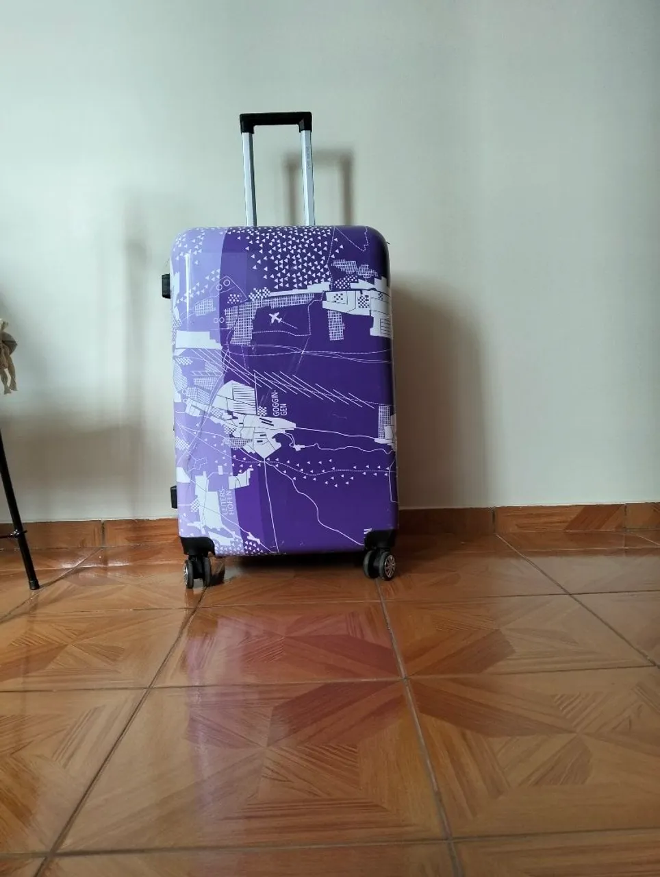 Mala grande, material rígida, capacidade até 23kg, 4rodas de 360°, cadeado embutido, puxador., usou 1 vez.