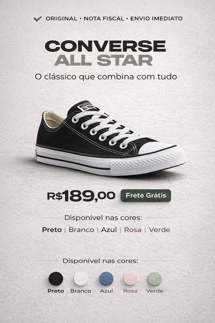OBS: possuímos diversos modelos este preço R$189 é referente a apenas um par de tênis.