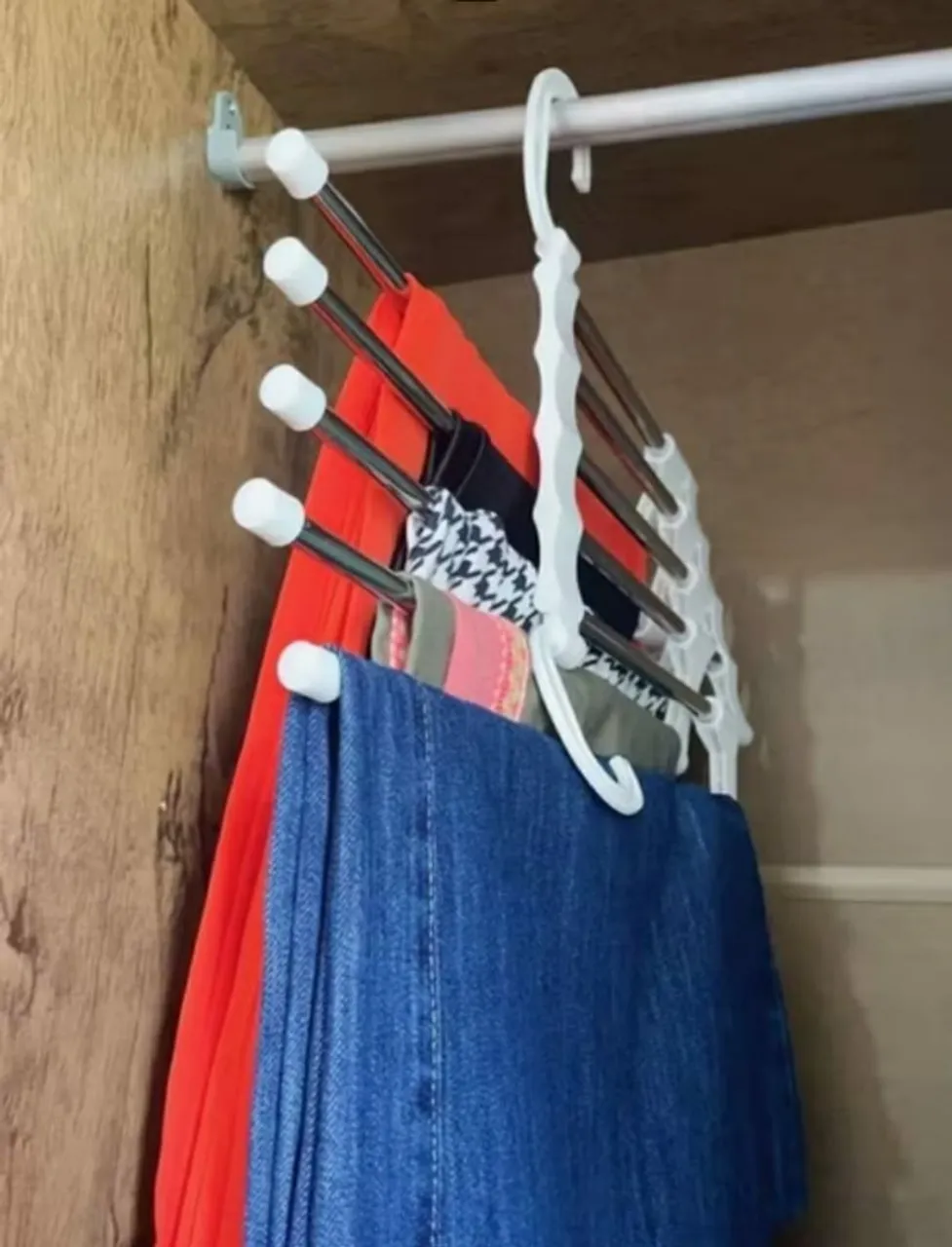 Kit 3 cabides para roupas 5 em 1 multifuncional calça blusa saia retrátil aço inoxidável
