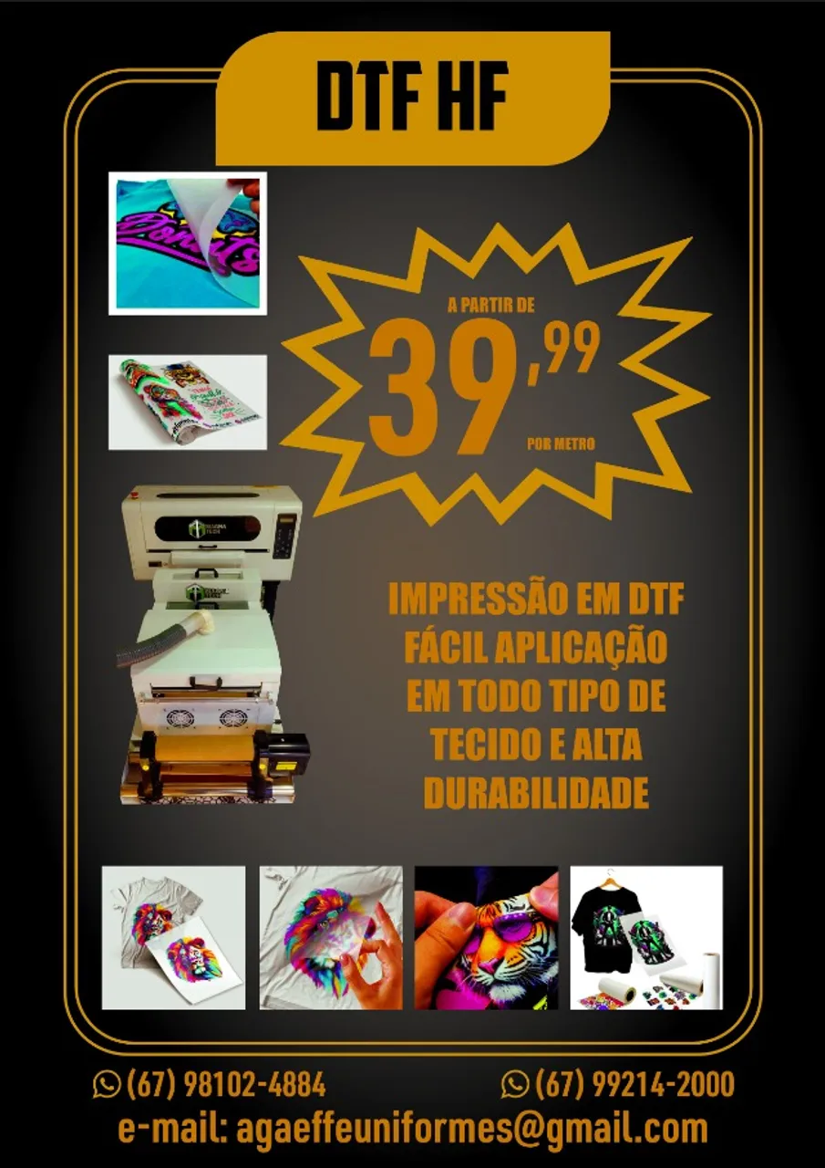 Transforme suas roupas com a impressão DTF! Fácil aplicação em diversos tecidos e cores vibrantes. Alta durabilidade e um visual incrível para suas peças!