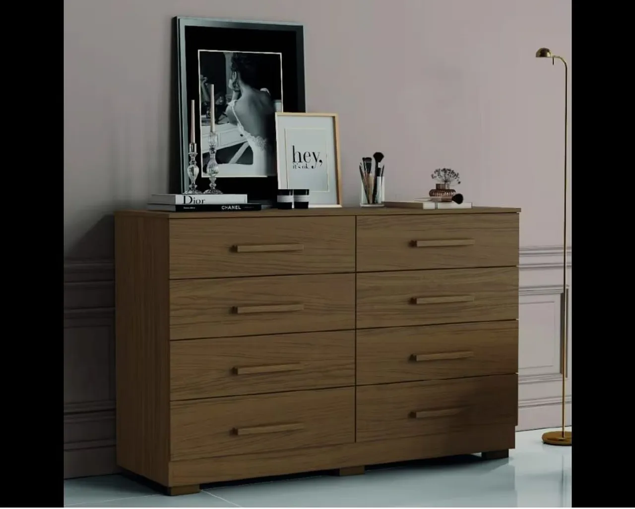 Cômoda de madeira com design moderno e funcionalidade. Possui 8 gavetas espaçosas para organizar seus pertences com praticidade e estilo. Ideal para quarto ou closet.
