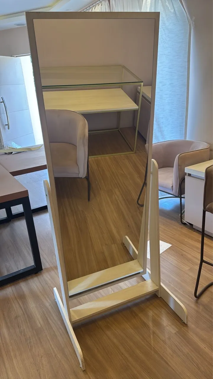 Espelho móvel elegante e funcional para qualquer ambiente! Design moderno e sofisticado que agrega valor à sua decoração. Ideal para provadores, quartos ou onde sua criatividade te levar.