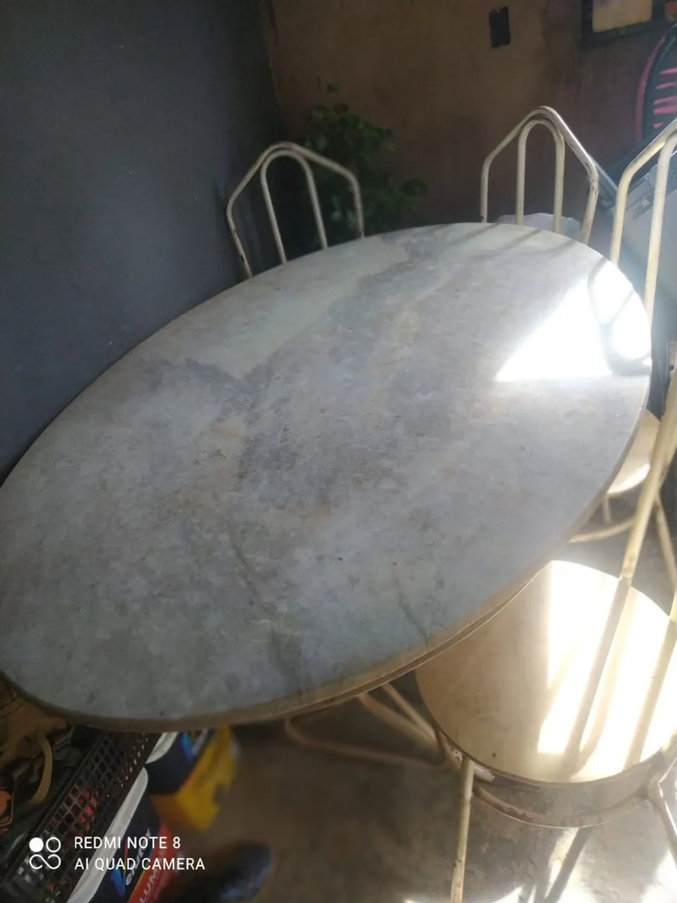Linda mesa de mármore, usada e antiga. Pedra de mármore muito boa. Obs: não acompanha cadeiras. Somente a mesa.
