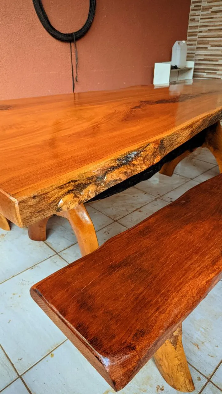 Linda mesa rústica com bancos, perfeita para dar um toque especial à sua casa .