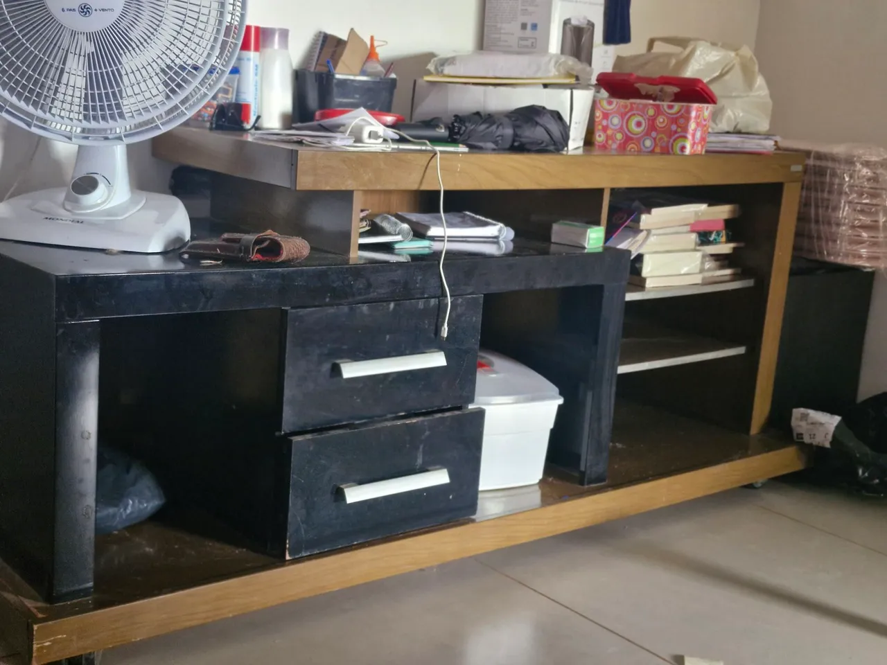 Rack usado, nas gavetas a desgaste da madeira. Apenas o rack sem mais nada que aparece na foto. Nao entregamos. Buscar no bairro Rita Vieira.