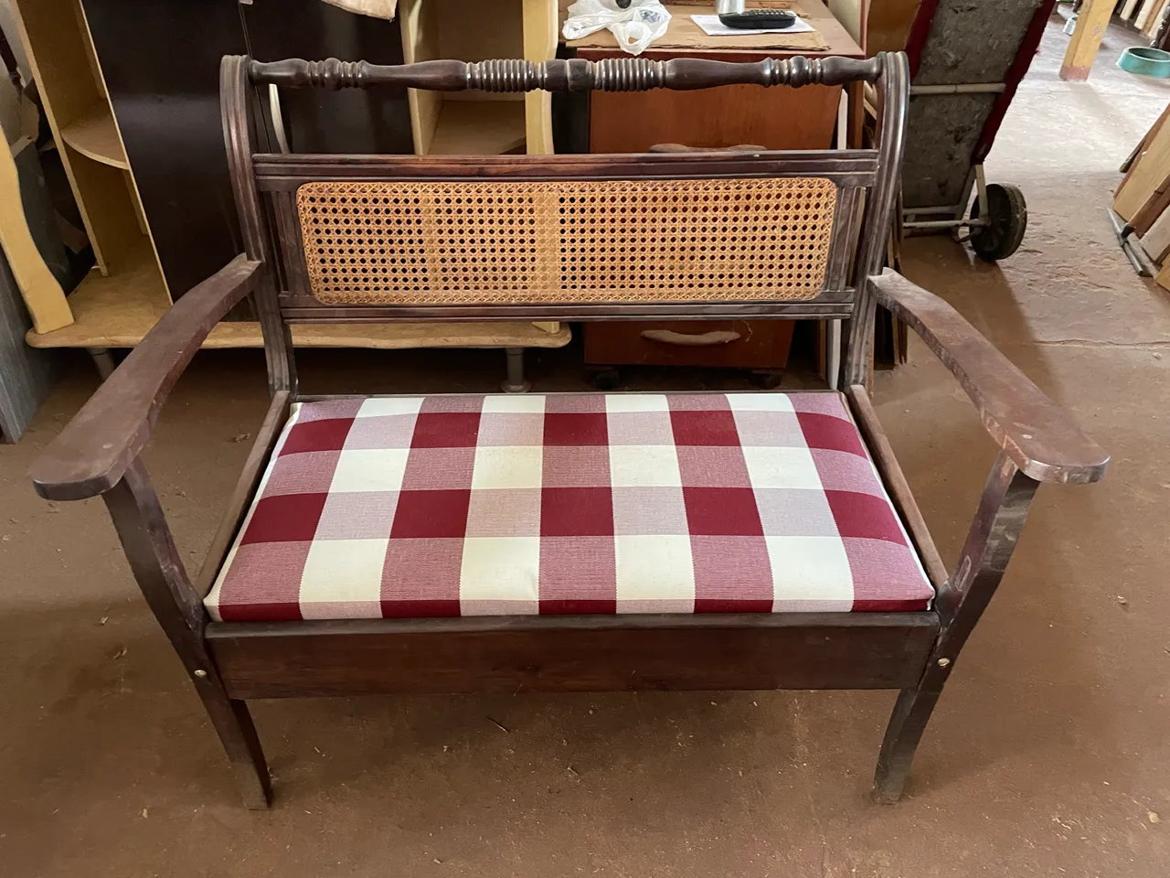 Namoradeira Madeira Maciça Imbuia Encosto com palhinha Comp. 1.05 Larg. 45cm Alt. 90