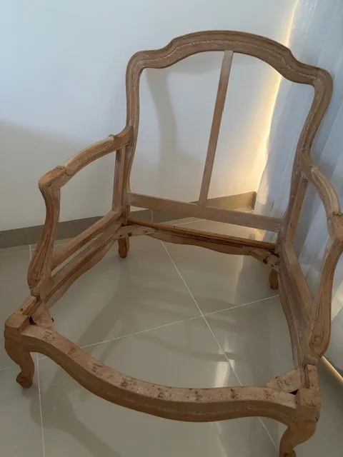 Estrutura de poltrona clássica, moveis de época. Indicada como peça de decoração em ambientes comerciais ou residenciais. Ideal para quem busca um projeto de restauro. Design elegante e detalhes em entalhes a mão. largura 0,82cm, comprimento 0,80 cm e altura 0,92 cm.