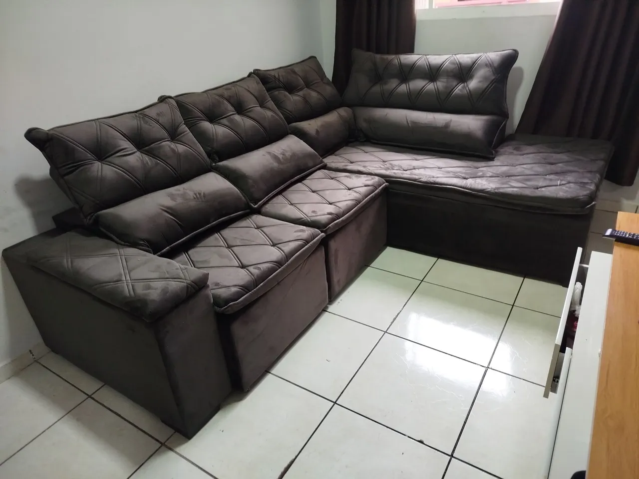 Estofado Portugal . Molas bonel . Madeiramento eucalipto . Tecido veludo . Com chaise . Costura reforçada . Rodízil de silicone . Dimensão 2.60 x 2 .m Só $ 2.499.00