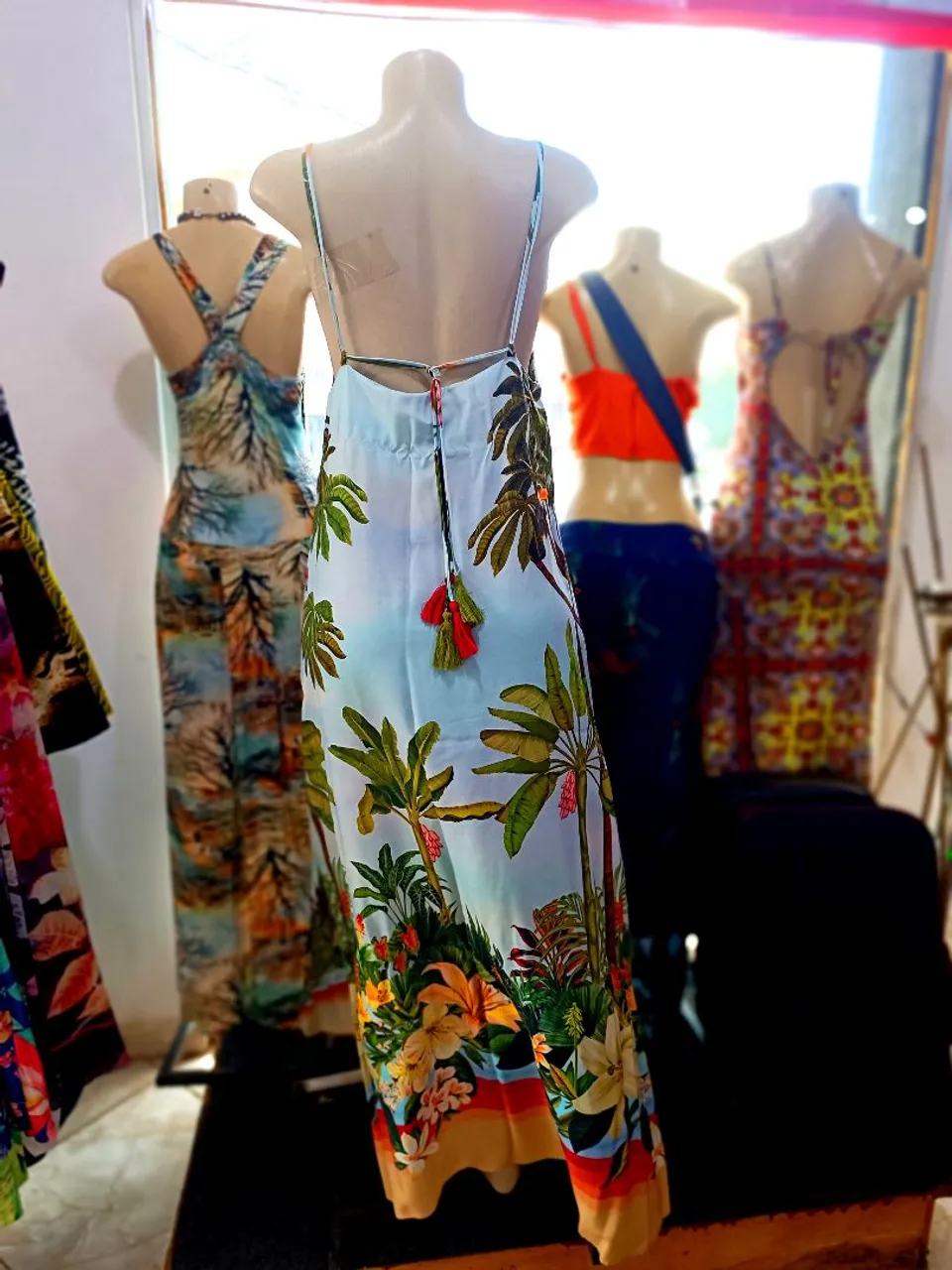 Vestido longo Farm com estampa tropical. Perfeito para um look leve e estiloso, ideal para diversas ocasiões. Detalhes que encantam e garantem um visual único!